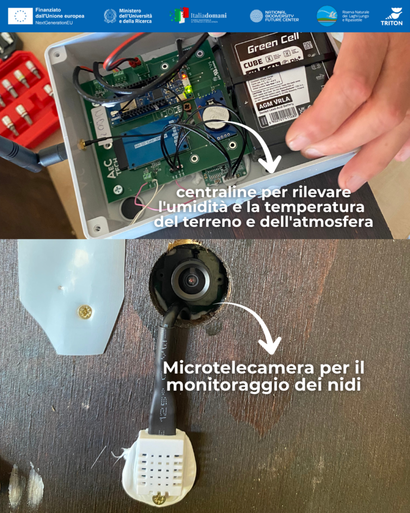 Attrezzate con sensori e microtelecamera, registrano su scheda SD – ogni ora – dati fondamentali come temperatura, umidità e presenza degli uccelli. Grazie a questa tecnologia è possibile monitorare la nidificazione in modo continuo e meno invasivo, riducendo al minimo la necessità di intervento umano. -